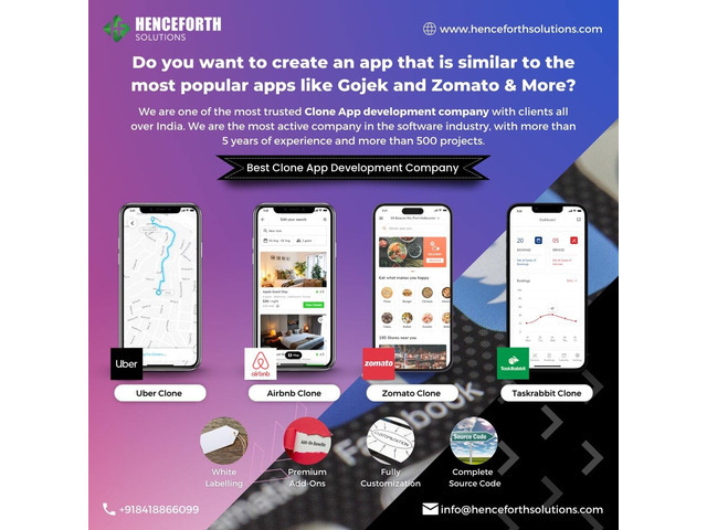Henceforth Solutions is the best clone app development company specializes in creating replicas of successful apps with customized features. We use pre-developed code frameworks to quickly and efficiently build app clones, allowing clients to enter the market faster with a proven product model. Clients can choose to fully customize their clone app or use a template similar to the original app. We also offer ongoing support and updates to ensure the clone app stays up-to-date and functional.