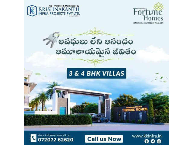 Upgrade your living standards with Vedansha's Fortune Homes in Kurnool. Our premium 3BHK and 4BHK duplex villas come equipped with a home theater system, perfect for entertainment enthusiasts. Located near Sudireddy Palli Road, our homes offer a luxurious and convenient lifestyle.