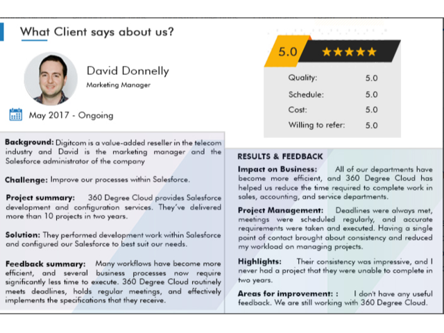 360 Degree Cloud is a trusted Salesforce Certified Silver Consulting Partner, as well as Product Partner, with 9+ years of experience and a track record of implementing 1250+ projects successfully with robust Salesforce services and expert solutions across verticals, scales, and niches.